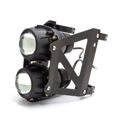 Siyah çift yığılmış Streetfighter projektör far seti motosiklet aydınlatma sistemleri